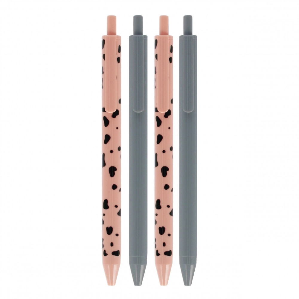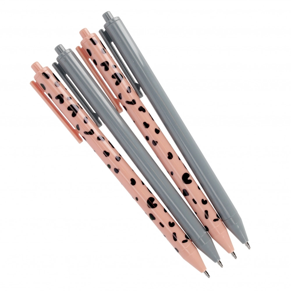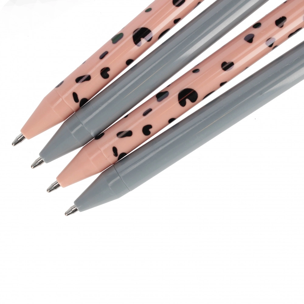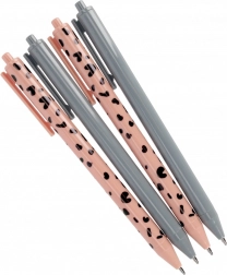 Ta set vsebuje 4 elegantna kroglična pisala – dve v umirjeni sivi in dve v rožnati z dekorativnim vzorcem. Ergonomska, vitka oblika in gladko ohišje pisala zagotavljata udoben oprijem in zanesljivo pisanje brez prekinitev. Idealno za zapiske, načrtovanje in vsakodnevno delo.