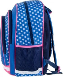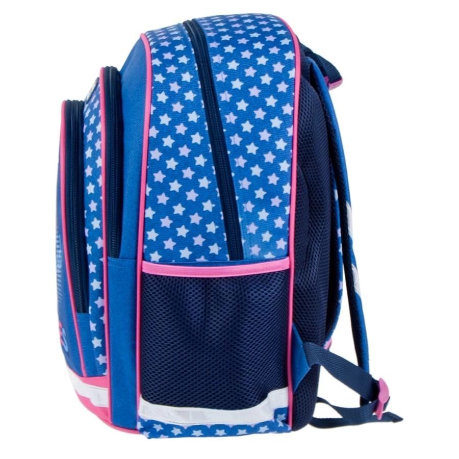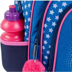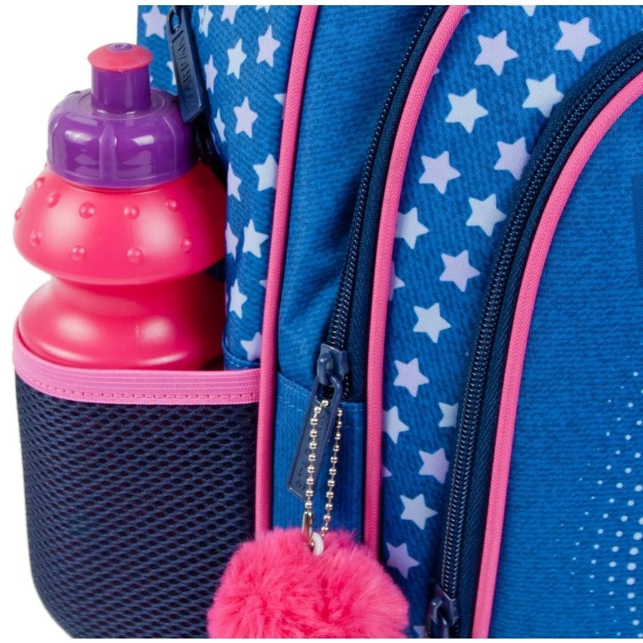 Ta otroški nahrbtnik v modro-rožnati kombinaciji navduši z igrivim dizajnom z zvezdicami in prepriča tudi s svojo praktičnostjo. Glavna komora sprejme učbenike, mape in malico, medtem ko dva sprednja žepa olajšata pregledno shranjevanje drobnarij. Stranska mrežasta žepa varno nosita steklenico s pijačo, da so vse potrebščine vedno pri roki.