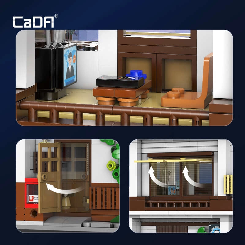 Model je poln drobnih rekvizitov: napisi, transparent z krapi koi, poštni ali zaboj za steklenice, hidrant, žleb, ovijajoče rastline in drugi dodatki. Premični deli, kot so odpirajoča se vrata, povečujejo igrivost in pristnost. Stavbnica je idealna za vse, ki imajo radi kreativne ročne projekte in želijo izboljšati zbranost ter domišljijo.