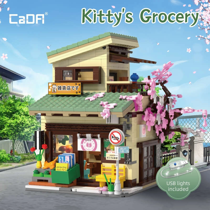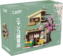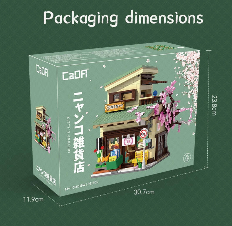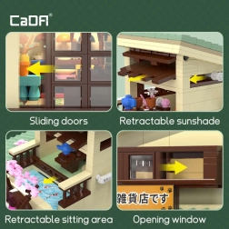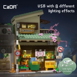 Odkrijte čar japonske arhitekture s sestavljanko CaDA, ki iz 921 kosov ustvari podroben modularni trgovski lokal z možnostjo vpogleda v notranjost. Ne manjkajo LED luči z 8 učinki, premični elementi (drsna vrata, izvlečna markiza, odpirajoče se okno) in bogate dekoracije, vključno s sakuro, stojnicami s koi ribami, napisi in figurico maneki-neko.