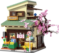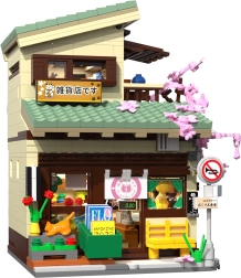 Ta vrhunska sestavljanka prinaša pristno vzdušje japonskega mestnega kotička. Edinstvena odpirajoča se konstrukcija omogoča lahek pogled v notranjost in občudovanje skrbno izdelanih podrobnosti – od pulta z izdelki do mirnega balkona z drevescem sakure in stojnice s koi krapi. LED luči (8 učinkov) modelu dodajo prijetno večerno atmosfero.