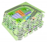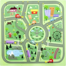 Ceste, krožišče, parki, jezerca, stavbe in prometni elementi spodbujajo domišljijo in prometno vzgojo. Idealno za avtomobilčke in figurice.