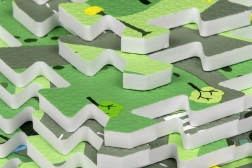 Podloga je izdelana iz prožne EVA pene brez ftalatov, formamida, PVC in BPA. Zagotavlja zanesljivo dušenje padcev in zaščito kolen pri plazenju.