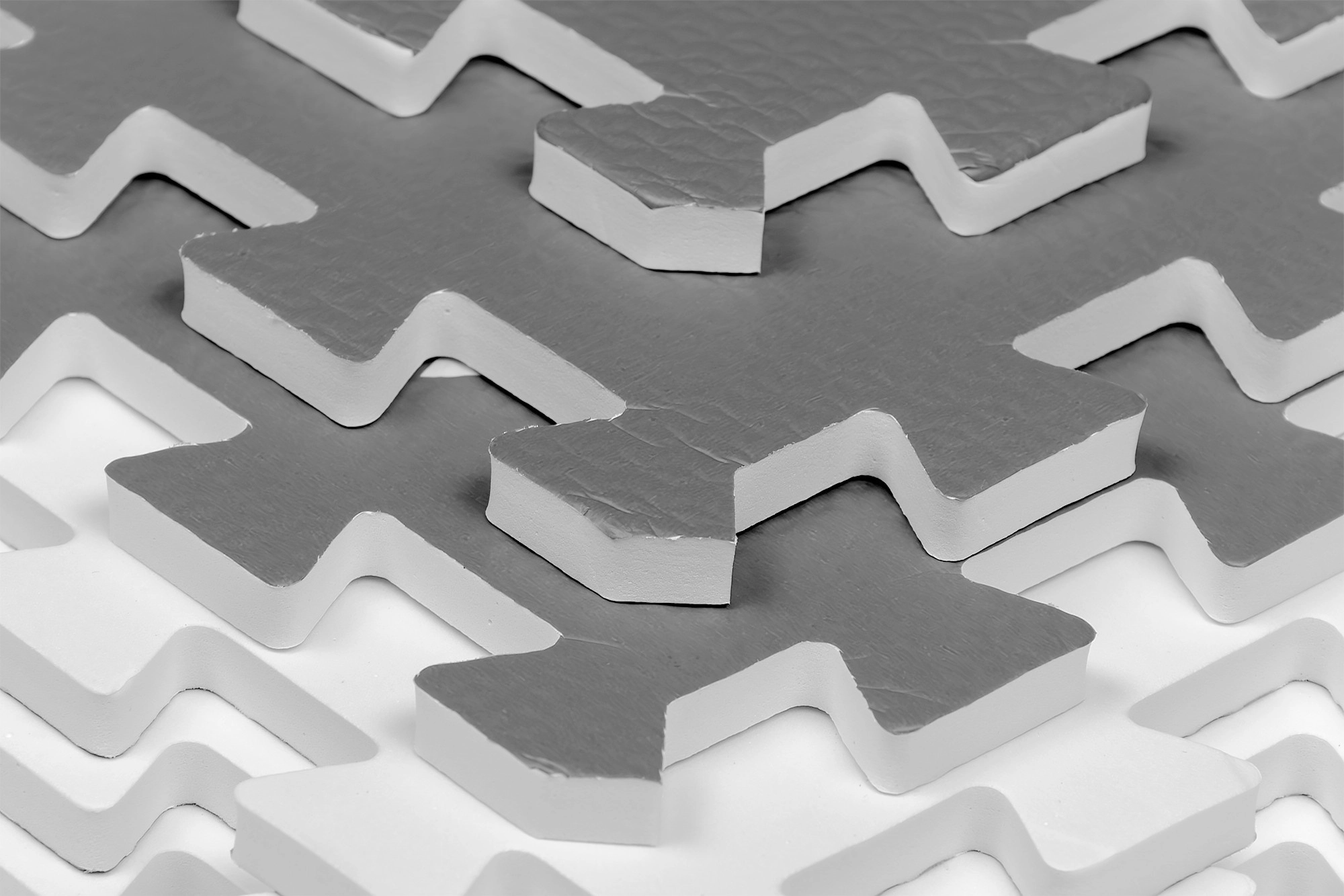 Modularne puzzle plošče 60 × 60 cm preprosto spojite v večjo površino ali iz njih ustvarite prostorske oblike (npr. kocko), ki razvijajo otroško domišljijo. Material EVA je vodoodporen in higienski – dovolj je obris z vlažno krpo, ne vpija prahu ali pršic.
