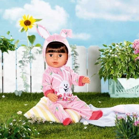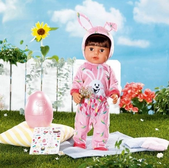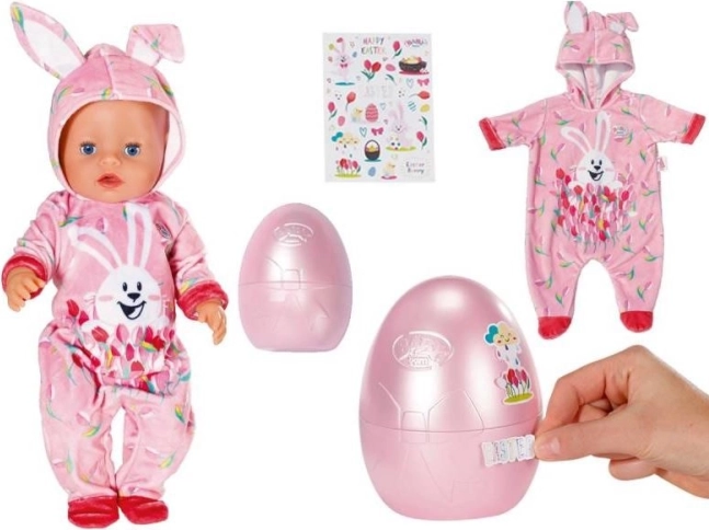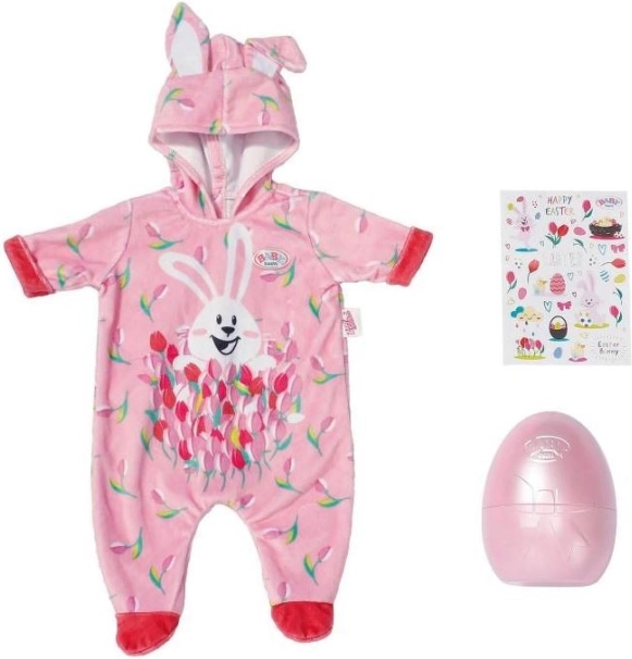 Velikonočno jajce BABY born je popolno presenečenje za vse male ljubitelje punčk. V rožnatem jajcu se skriva prisrčen pajac z motivom zajčka Benna in spomladanskih tulipanov. Kapuca ima vesela zajčja ušeska, ki oblačilu dodajo igriv videz.