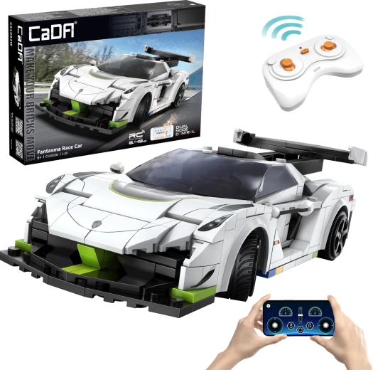 Uživajte v pametno zasnovani stavebnici CaDA iz serije Make Your Bricks Move, ki razvija koordinacijo oko–roka, pozornost in kreativnost. Model FANTASMA Race Car v merilu 1:20 izstopa s prefinjenimi detajli, aerodinamičnimi elementi in kokpitom s pokrovom. Po sestavi dobite popolnoma funkcionalen RC avto z pogonom na gumijastih kolesih in občutljivim krmiljenjem.