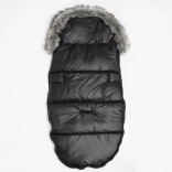 Notranjost tvori izjemno prijetna semišasta plast, ki pomaga ohranjati stalno temperaturo in preprečuje pregrevanje. Vrečka ima odprtine za 5-točkovne varnostne pasove, zato se odlično prilega v voziček in avtosedež ter omogoča varno pripenjanje. Črno‑srebrn moderen dizajn z nežnim leskom in vezenjem NEW BABY bo razveselil vsako sodobno mamico tudi kot odlično darilo.