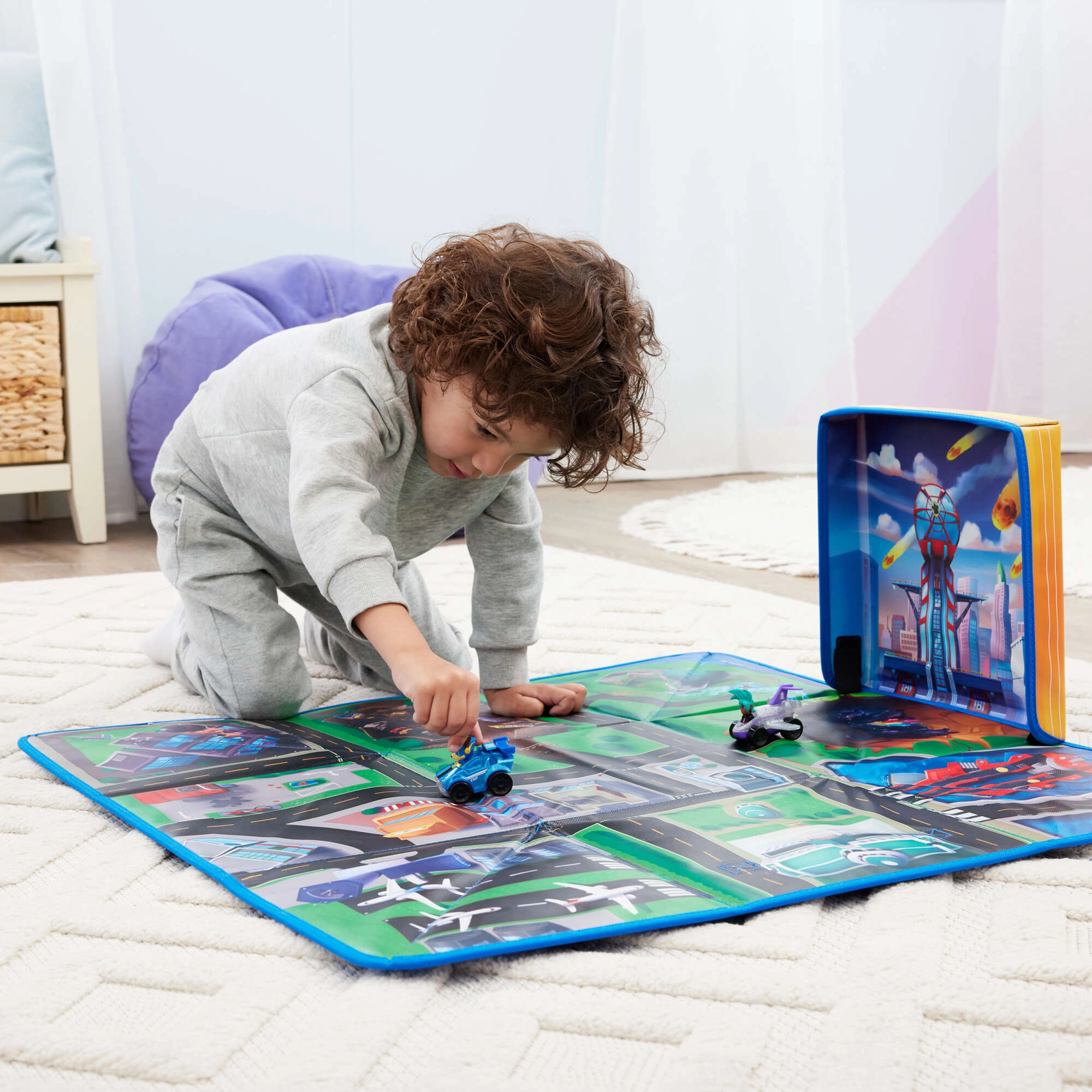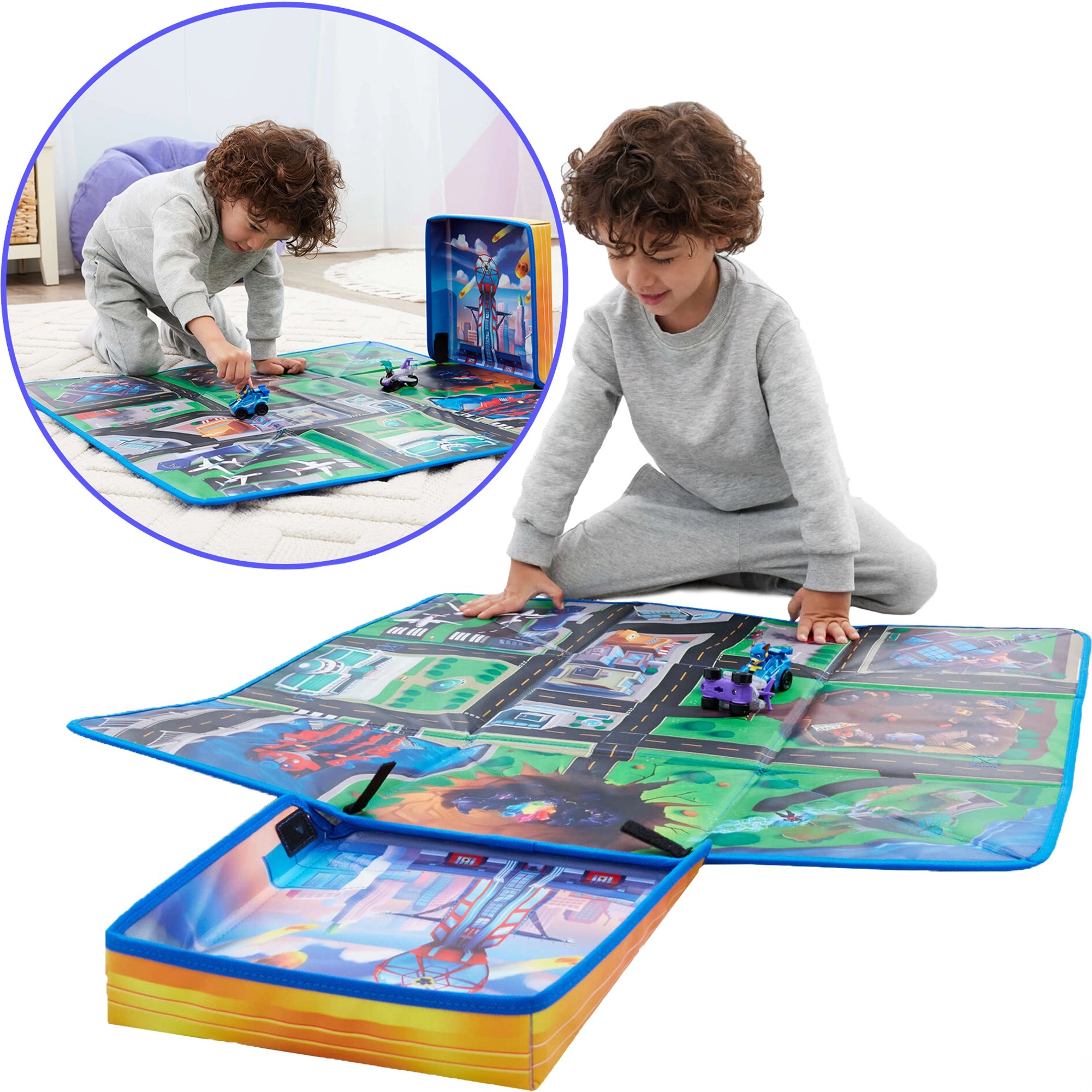 Ta zložljiva podloga, navdihnjena s filmom PAW Patrol: The Mighty Movie, prinaša v otroško sobo celo Mesto dogodivščin – ulice, križišča, most in letališče. Površina je mehka, barvita in vabi k domiselni igri z vozili in figuricami priljubljenih junakov.