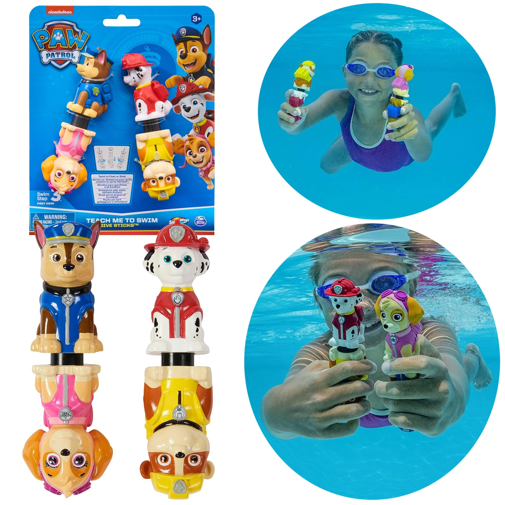 Palice imajo opazne barve in like, ki jih otroci obožujejo, kar povečuje motivacijo za ponavljajoči trening. So odlična oprema za bazen, kopališče in počitnice ob vodi ter razvijajo koordinacijo, dihanje in samozavest pri plavanju. Pakiranje vsebuje 2 potapljaški palici s priljubljenimi junaki – Chase in Skye, Marshall in Rubble.