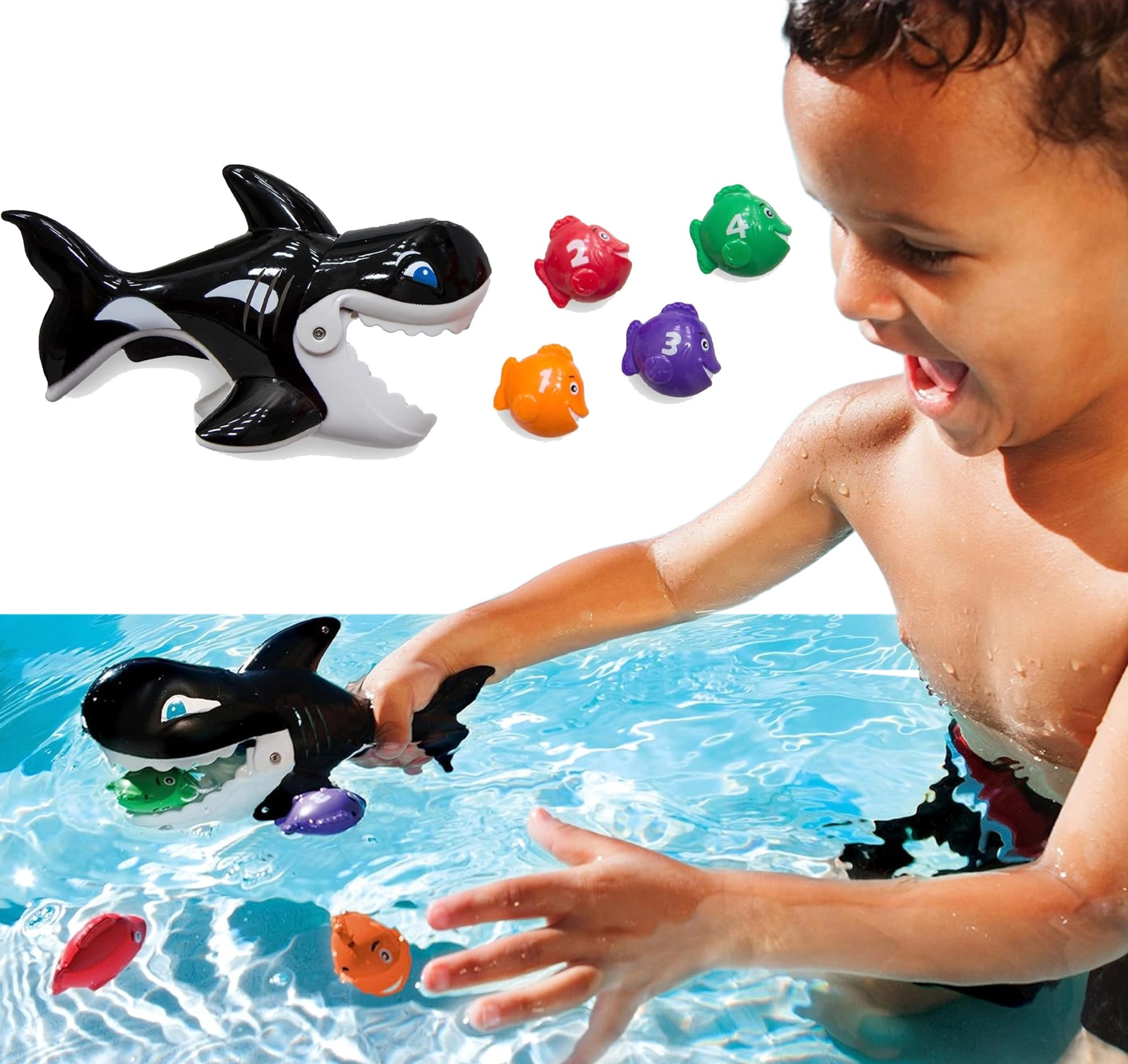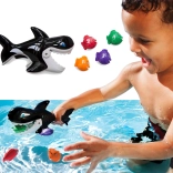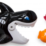 Pritisnite sprožilec na ročaju in gobec orke se odpre, da „požre“ plavajoče ribice. Odlično za urjenje koordinacije in natančnosti.