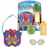 Del kompleta je tablica z Brunovo vizijo, sestavljena iz več kosov kot puzzle, ki jo je mogoče sestaviti in razkriti Mirabel. Zelena okrogla očala brez dioptrije posnemajo tista iz filma, medtem ko je rožnata torbica s turkiznim trakom in imenom Mirabel idealna za malenkosti. Rumena sveča z ornamenti ob pritisku na gumb nežno zasveti in igri doda magično vzdušje.
