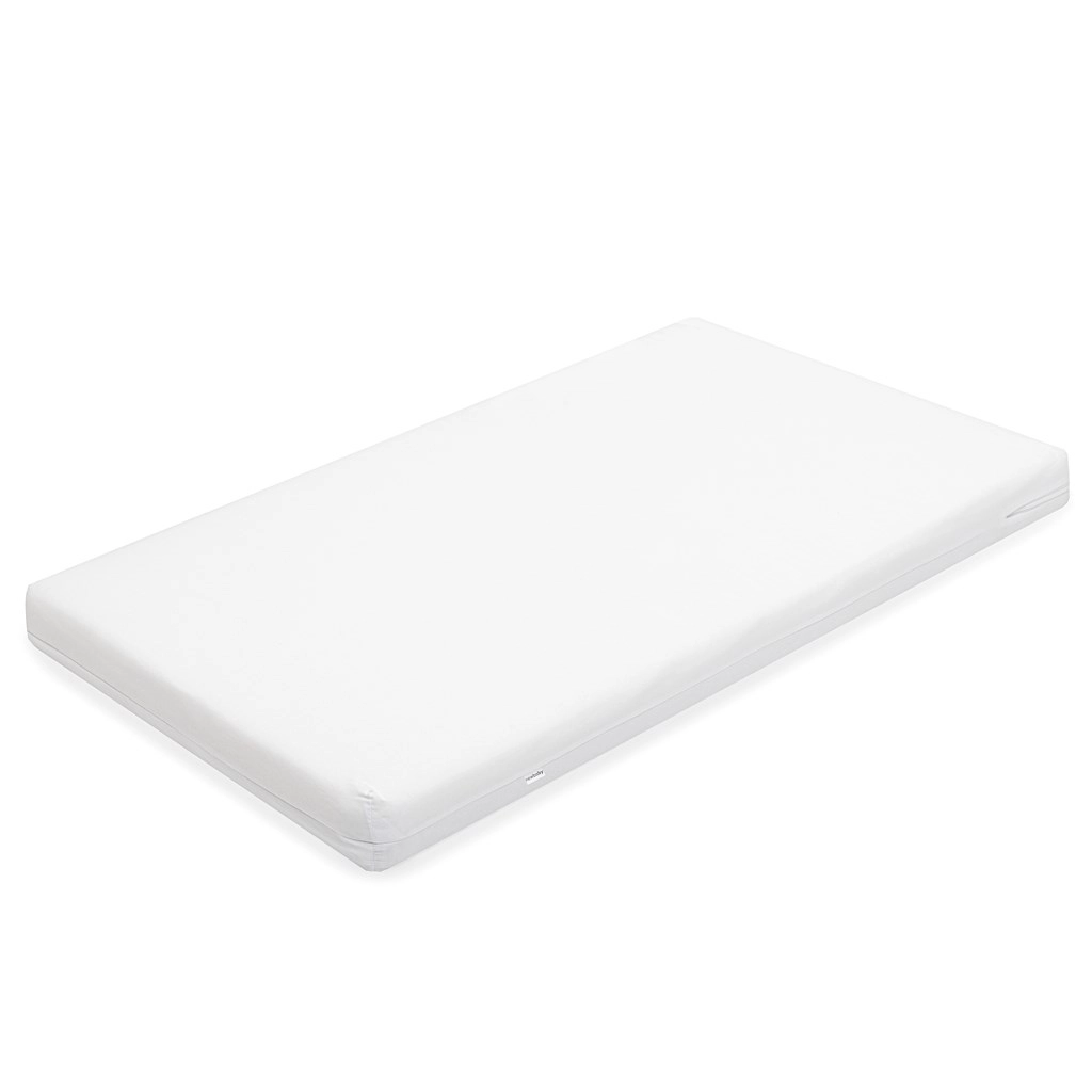Iščete vzmetnico za posteljico, ki bo podpirala zdrav razvoj hrbta in hkrati nežna do občutljive otroške kože? Obojna vzmetnica NEW BABY v velikosti 120 × 60 × 7 cm združuje čvrsto kokosovo ploščo za pravilno trdoto in zračnost s prožno PU peno za udobje in ortopedsko oporo. Prevleka je prijetna na dotik, enostavno se sname in pere, zato bo dojenčkova posteljica vedno sveža in higienska.
