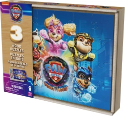 Ta komplet lesenih sestavljank prinaša pustolovščine iz filma PAW PATROL The Mighty Movie naravnost v otroško sobo. Vsaka iz trojice motivov prikazuje priljubljene like pri junaških misijah, trdni leseni koščki pa odlično sedejo v otroške roke. Slike so jasne, živo barvite in imajo po sestavljanju dimenzije 27,9 × 20,8 cm.