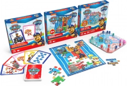 Komplet 3v1 z motivom PAW PATROL prinaša ure zabave za male oboževalce priljubljenih mladičev. Otroci lahko sestavljajo barvite puzzle (24 koščkov), tekmujejo v pop-up igri s kocko pod prozorno kupolo ter vadijo spomin in pozornost z jumbo kartami z velikimi ilustracijami junakov.