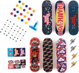 Paket vsebuje 1 popolnoma sestavljen fingerboard, 5 dodatnih desk z griptapeom, nalepke, 20 kolesc, 4 trucke, 26 vijakov, 14 matic in montažno orodje – pripravljeno za neskončne kombinacije.