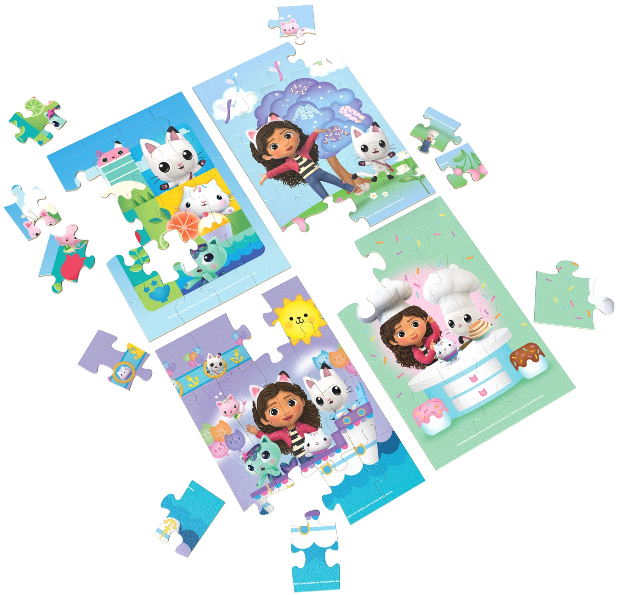 Odkrijte zabavne lesene puzzle, navdihnjene s priljubljeno serijo Gabbin mačji domek znamke Spin Master. V kompletu najdete 4 sestavljanke z različno zahtevnostjo (12, 16, 20 in 24 koščkov), vsaka v dimenzijah 22,86 × 15,24 cm. Kakovostna lesena izvedba zagotavlja vzdržljivost in prijeten občutek pri sestavljanju ter spodbuja logično razmišljanje, potrpežljivost in koncentracijo otrok od 4 let naprej.