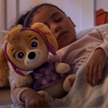 Nežna površina in polnilo nudita tolažbo pri uspavanju in med igro. Sedeča izvedba drži Skye stabilno na postelji ali polici.