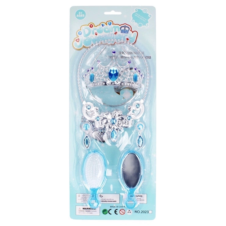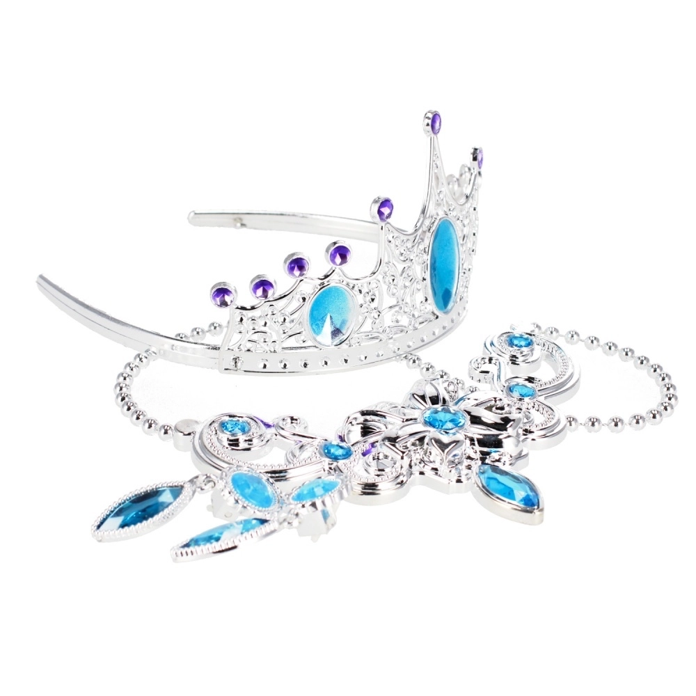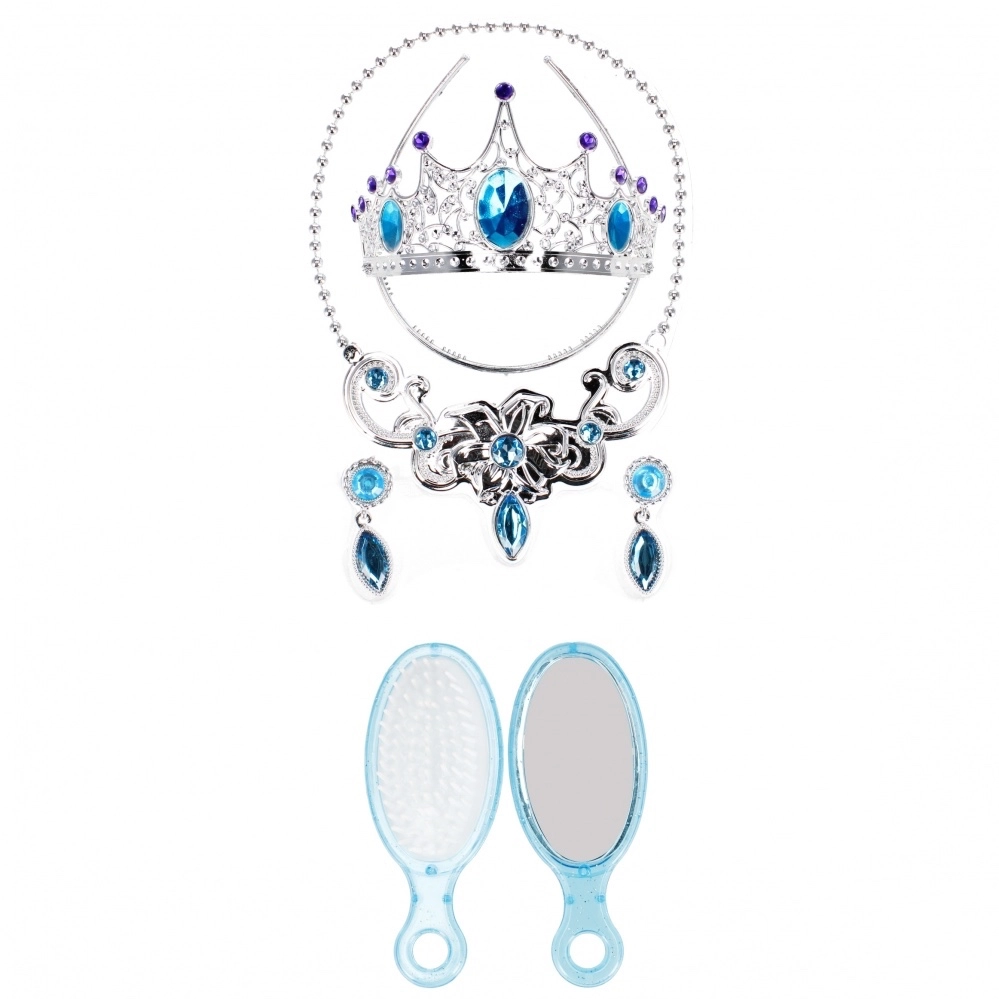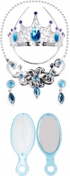 Ta pravljični komplet nakita in dodatkov za ledeno princeso bo očaral vsakega otroka, ki obožuje preoblačenje in ustvarjalno igro. S kombinacijo bleščečega diadema, ogrlice, uhančkov in praktičnih lasnih dodatkov si otroci zlahka ustvarijo kraljevski videz.