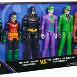 Figurice višine pribl. 28 cm so zasnovane tako, da zdržijo vsakodnevno igro, hkrati pa odlično izgledajo na polici. Komplet vključuje: Batmana v črno-rumeni opravi s plaščem, Robina z masko, Nightwinga v črni z modrimi poudarki, Jokerja v ikonični vijolični opravi, Ugankarja v zeleni obleki z »?« in Copperheada z repom.