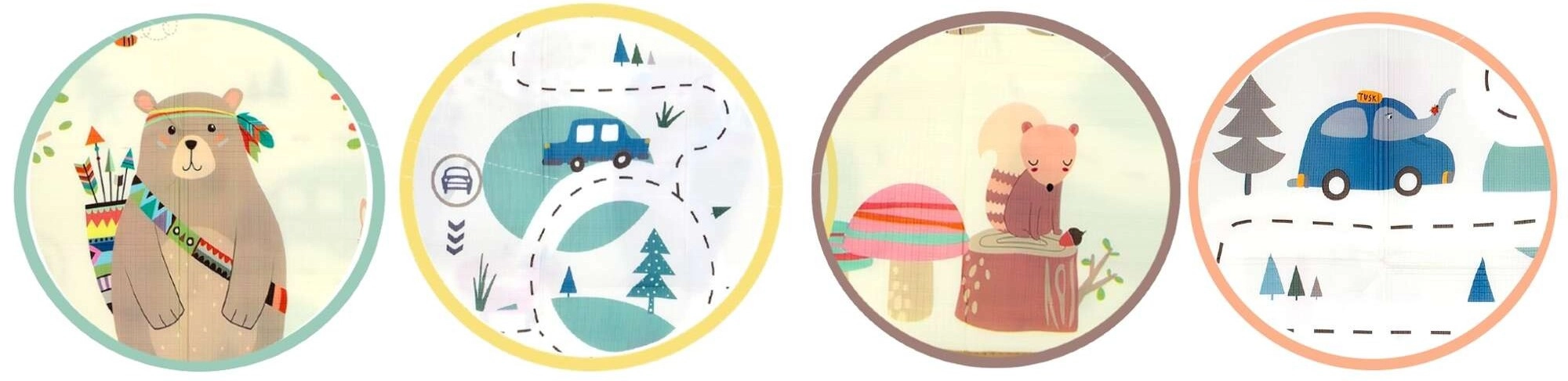 Ena stran z ljubkimi živalicami za otroško sobo, druga s cesto in avtomobili za igre z avtomobilčki. Preprosto jo uskladite z interierjem in razpoloženjem otroka.