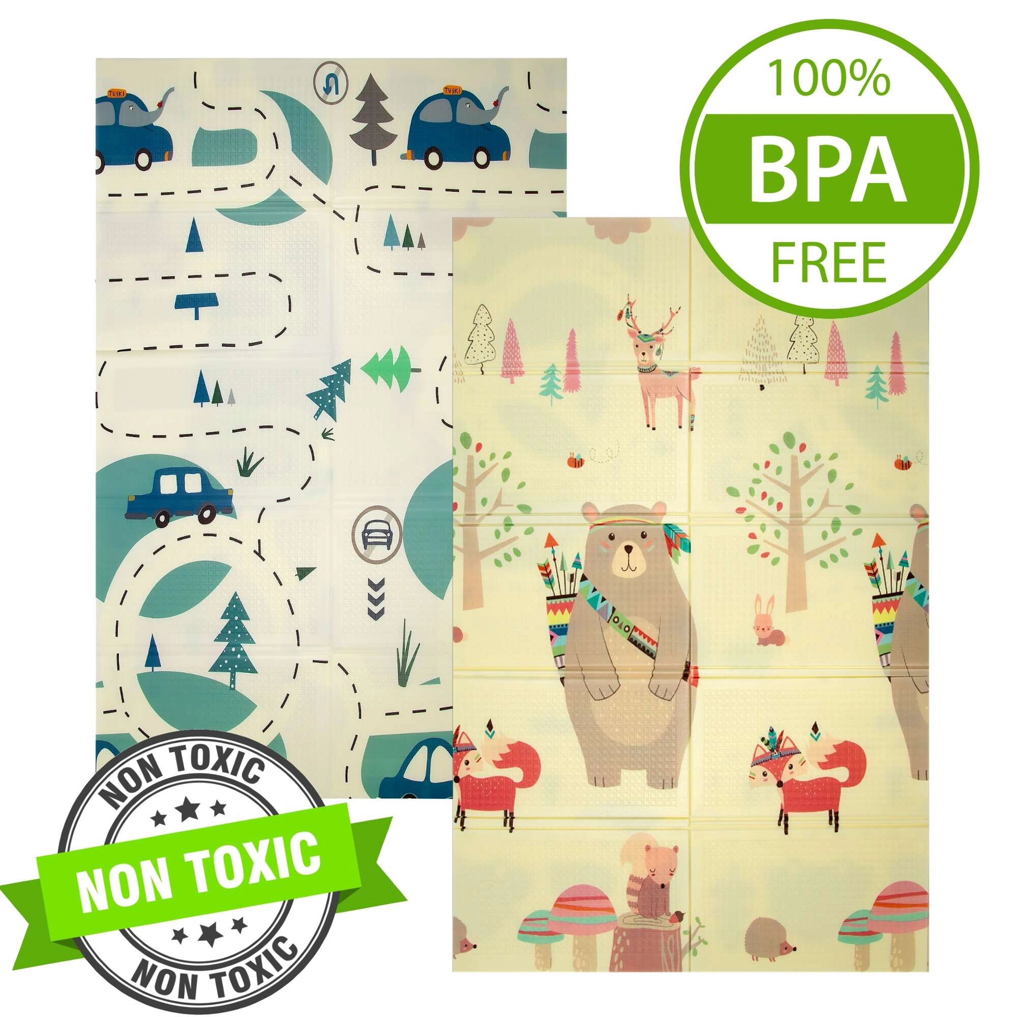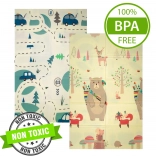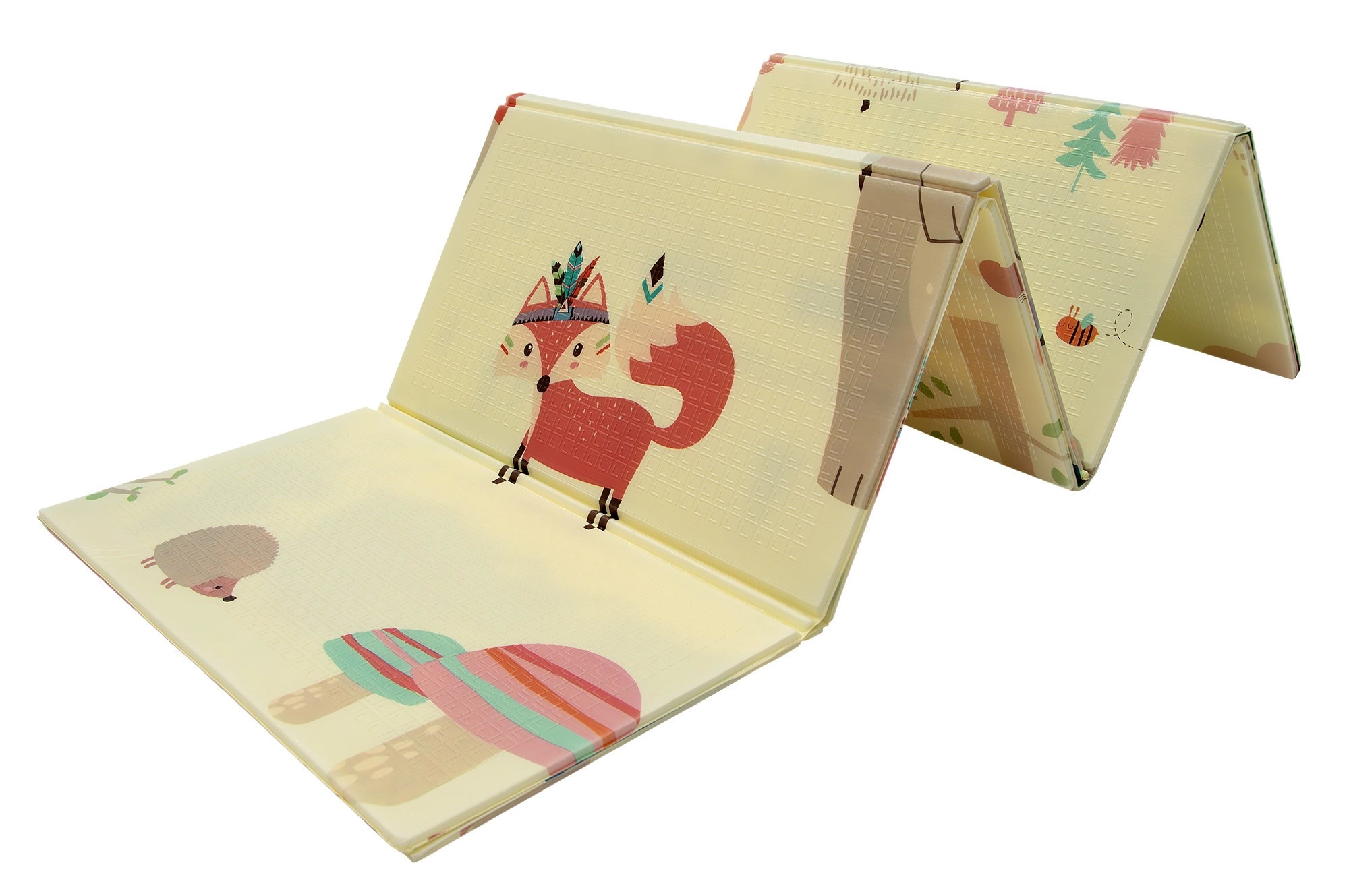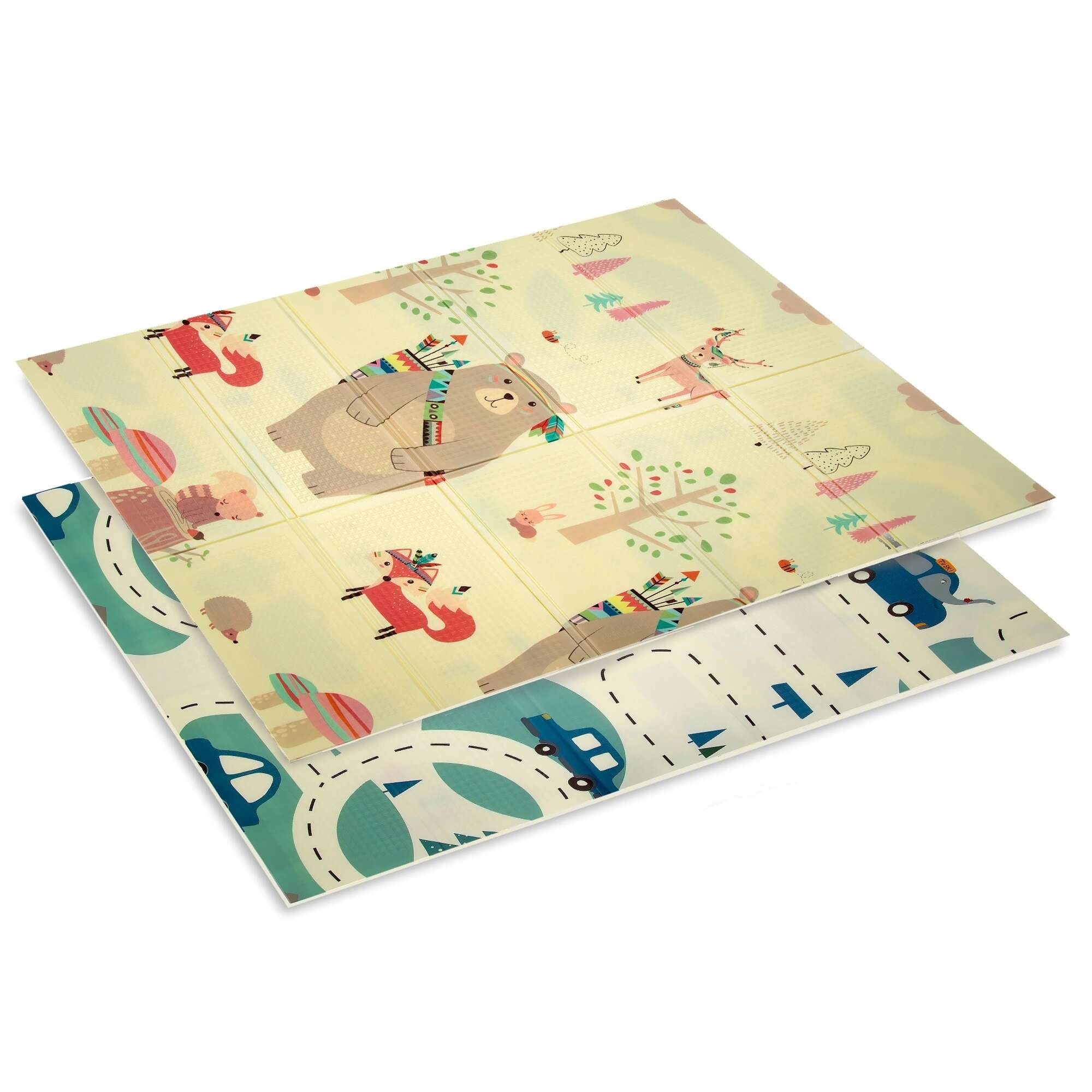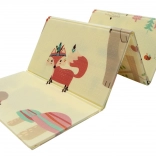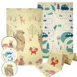 Podloga HUMBI otrokom nudi mehko in varno mesto za igro, počitek in razvoj motorike. Kakovostna pena XPE je čvrsta, blaži udarce in hkrati odlično izolira mraz s tal. Obojestranski dizajn na eni strani ponuja ljubke gozdne motive (medvedki, lisice, ježi), na drugi pa cesto z avtomobilčki za zabavno vožnjo in senzorično raziskovanje.