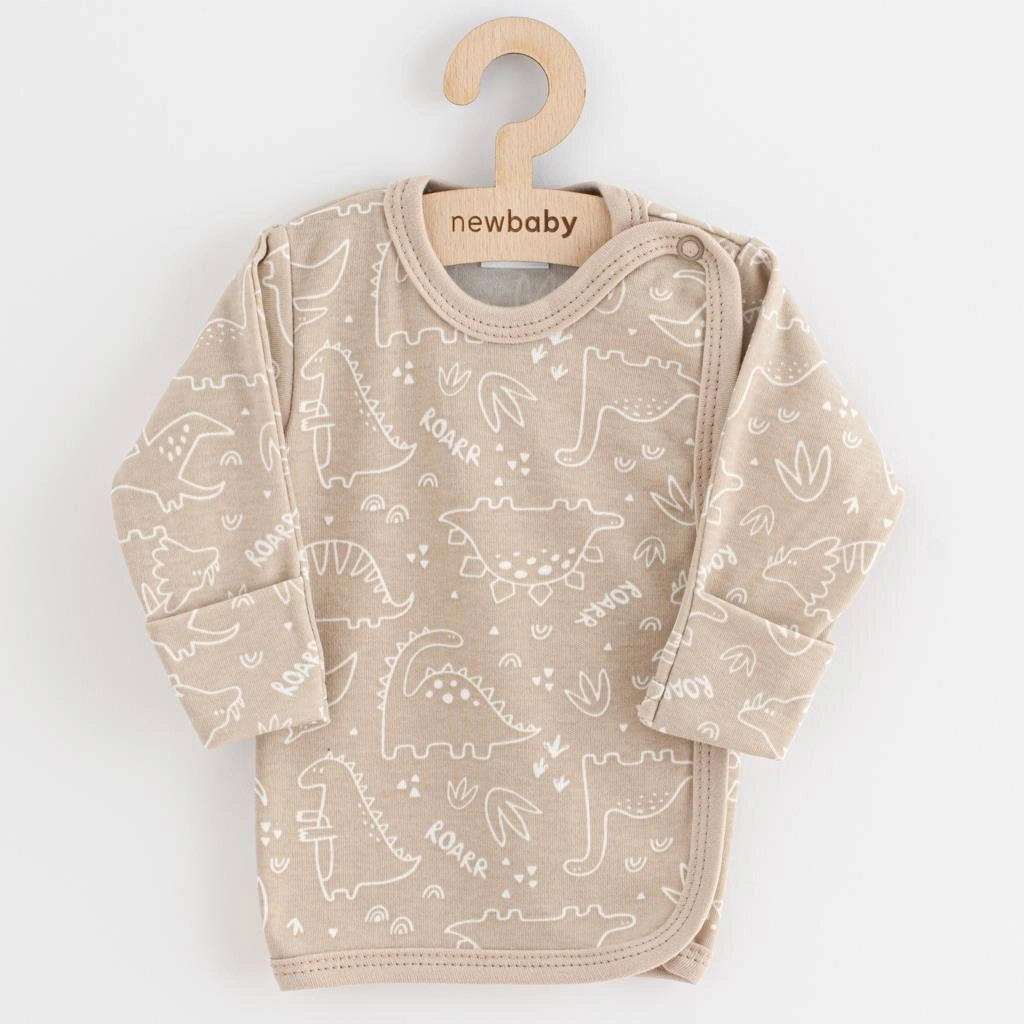 Set vsebuje 3 kose v harmonični mešanici vzorcev: enobarvna bež, majica z dinozavri in majica z zvezdicami. Zavihljivi rokavčki pomagajo preprečiti praskanje z nohtki in ohranjajo toploto, zato so odlični za novorojenčke in mlajše dojenčke.