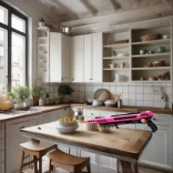 - Rožnato‑črna izvedba z oranžnimi elementi, ergonomski ročaj