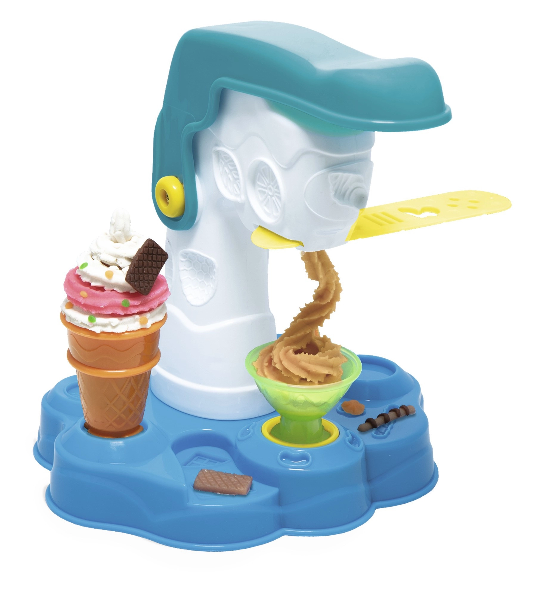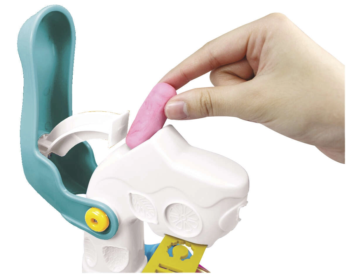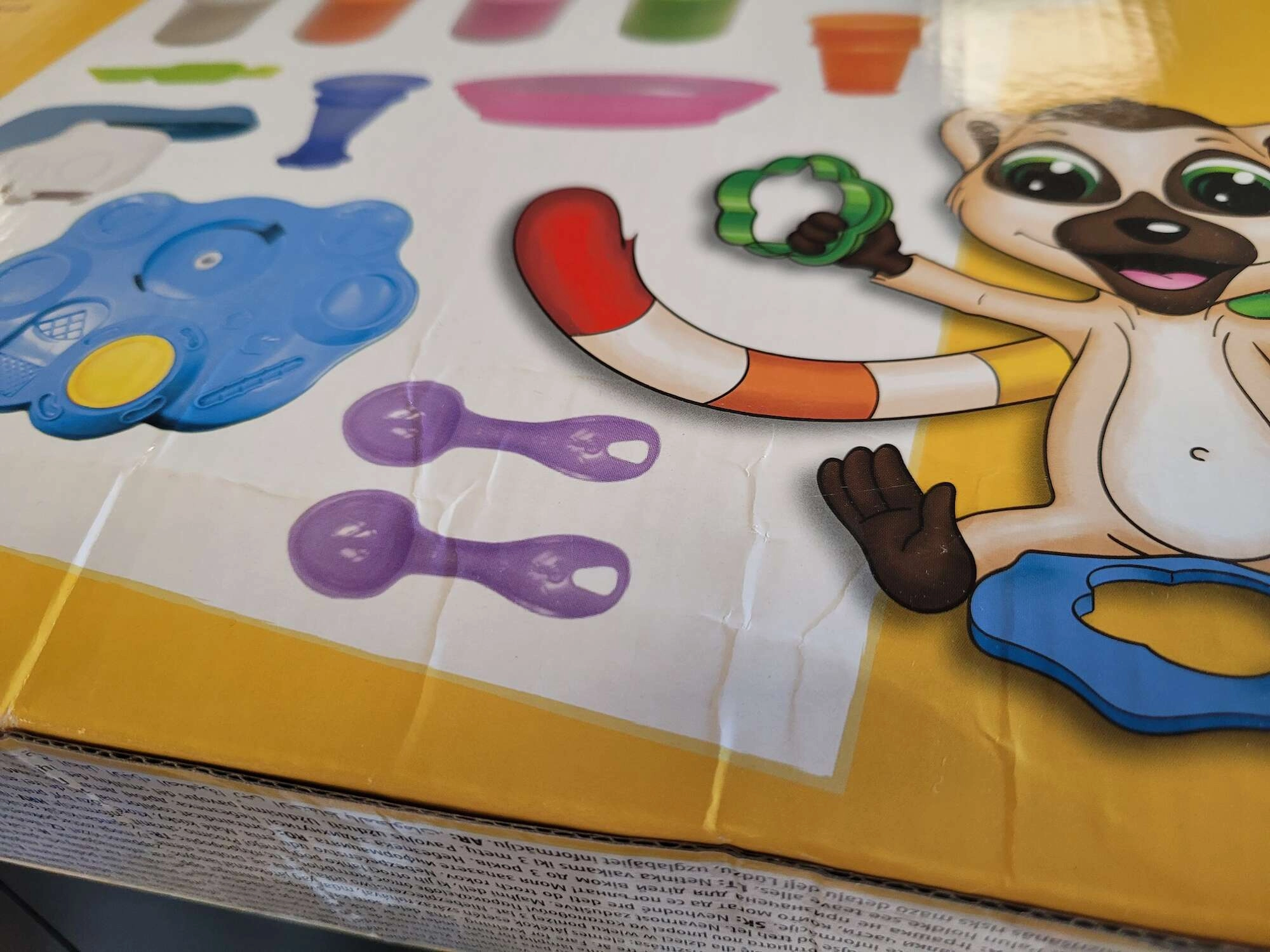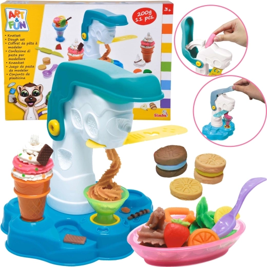 Ta zabavna sladoledarna omogoča otrokom iztiskati “kepice”, jih okrasiti s posipi ter zlagati v ljubke lončke in skledice. Z bogatimi pripomočki lahko mali slaščičarji kombinirajo barve in oblike ter postrežejo svoje sladice – od klasičnih sladoledov do mavričnih dobrot z “prelivom” in “sadjem”.