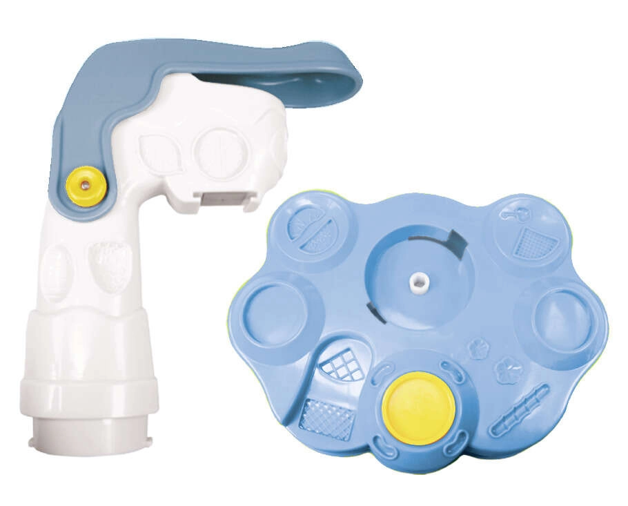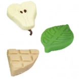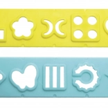 Različni nastavki, žigi in modeli za okraske in “prelive” razvijajo domišljijo in fino motoriko pri okraševanju sladic.