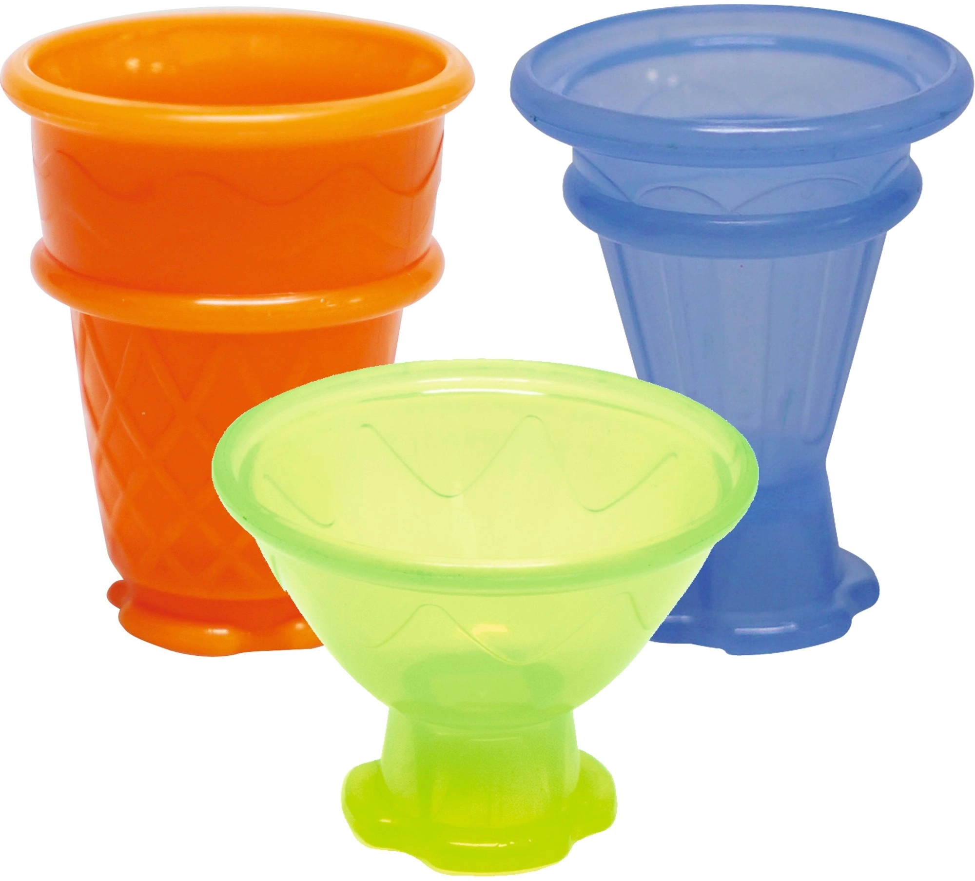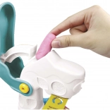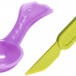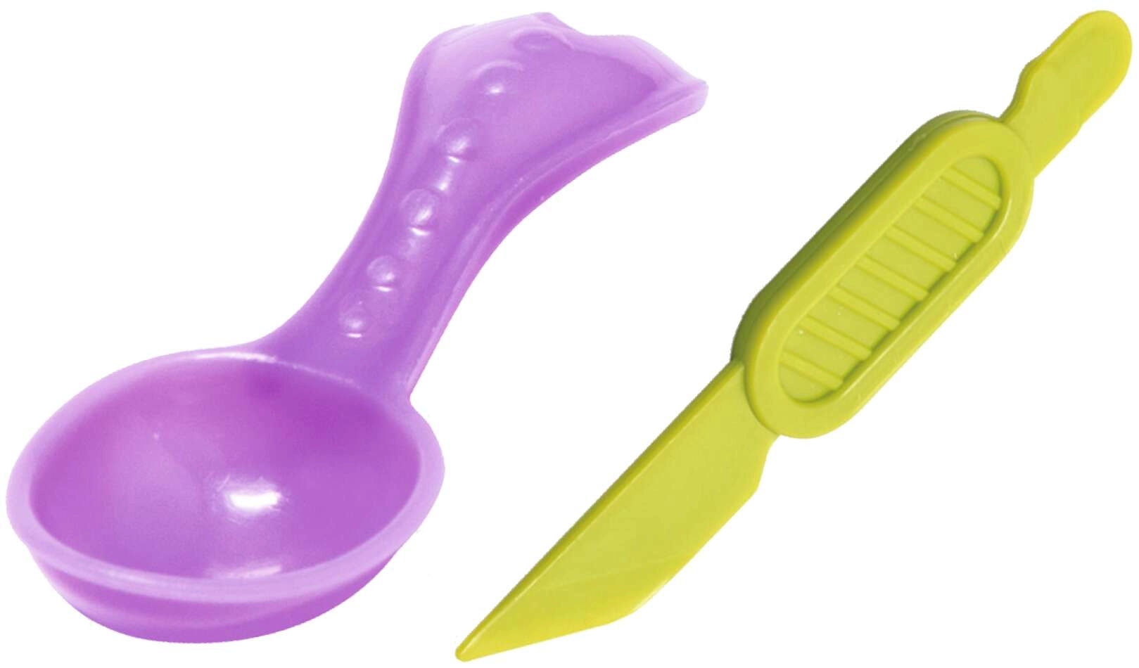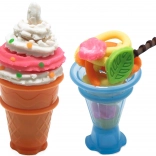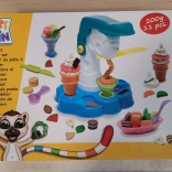 - Postaja z iztiskovalnikom, modelčki za sladoled in okraske, lončki in skledice, žlička, varen nožiček, 4 lončki plastelina