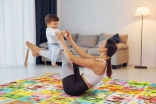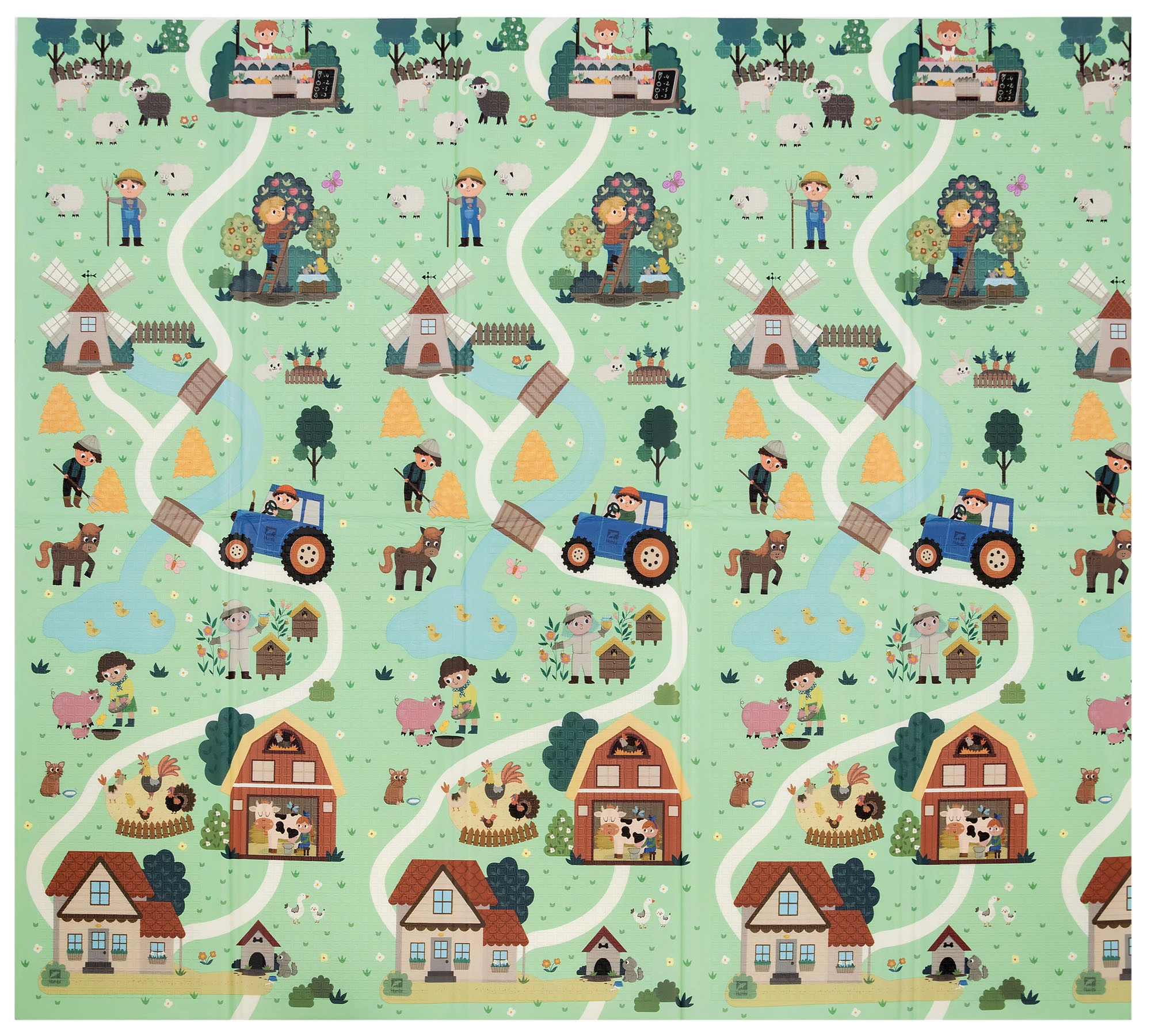 Velika, mehka in dvostranska podloga iz XPE pene nudi otrokom udobje in varnost pri igri, plazenju in prvih korakih. Je zložljiva, vodoodporna, preprosta za čiščenje in jo lahko zahvaljujoč priloženi transportni torbi vzamete kamor koli – v otroško sobo, dnevno sobo ali na vrt. Izpolnjuje evropske varnostne standarde in ne vsebuje škodljivih snovi.
