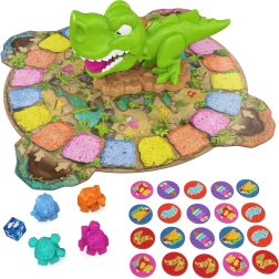 Pomagajte lačnim jamskim ljudem zbirati okusne prigrizke in se izogniti nagajivemu jeziku dinozavra v igri SNACK‑O‑SAURUS REX znamke Spin Master. Preprosta pravila, hitro in dinamično igranje, zabava za otroke od 5 let naprej in vso družino. Cilj je zbrati dva para prigrizkov, a pozor – dinozaver vas lahko pošlje nazaj ali vam plen pobere!