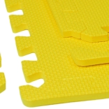 Penaste sestavljanke HUMBI ustvarijo prilagodljivo igralno površino v umirjenih barvah rumene, sive in črne. Deli se natančno prilegajo, zato hitro sestavite varno mesto za igro na katerikoli trdi podlagi. Zahvaljujoč debelini 1 cm podloga izolira pred mrazom in blaži padce, kar boste cenili pri prvih poskusih sedenja, plazenja in hoje.
