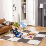 Material EVA je vodoodporen in higienski – dovolj je obrisati z vlažno krpo. Protizdrsna tekstura zagotavlja stabilnost in prijeten občutek na dotik. Sestavljanke lahko povezujete v večjo površino ali ustvarjate preproste 3D oblike, s čimer spodbujajo razvoj motorike in domišljije.