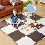 Pena sestavljanka HUMBI iz kakovostne EVA pene otrokom nudi varen prostor za prve obrate, plazenje in korake. Zaradi debeline 1 cm odlično amortizira padce in izolira mraz s keramike, parketa ali laminata. Material je vodoodporen, zato je podlogo enostavno vzdrževati – dovolj je obris z vlažno krpo. Diskretni krem in bež toni ne motijo, temveč dopolnjujejo sodoben interier.