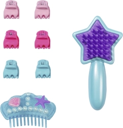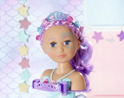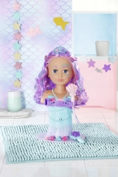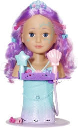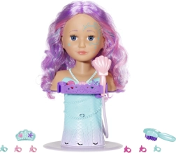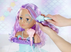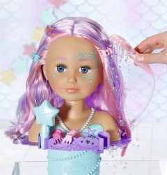 Glava za česanje BABY born Sister Morska vila spremeni vsako kopel v podmorski frizerski salon. s trdnimi priseski se prisesa na kad, po odstranitvi školjkaste pršne glave pa se aktivira črpalka – voda resnično teče, če je glava v vodi. lahko vrtljiva glava z naslikanimi obraznimi detajli vabi k ličenju in igram lepotnega salona.