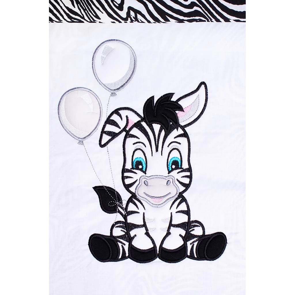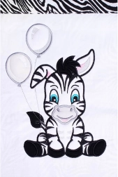 Odkrijte udobje in varnost za otroško sobico. Posteljnina New Baby Zebra v belo‑črni izvedbi navduši z veselim motivom zebre in celoploščnimi črtami. Nežna bombažna tkanina je zračna, prijetna na dotik in idealna za vsakodnevno uporabo.