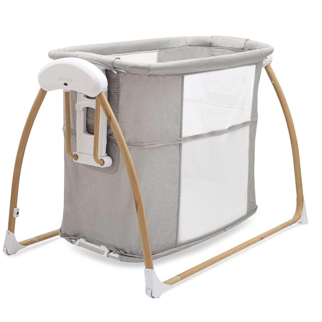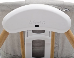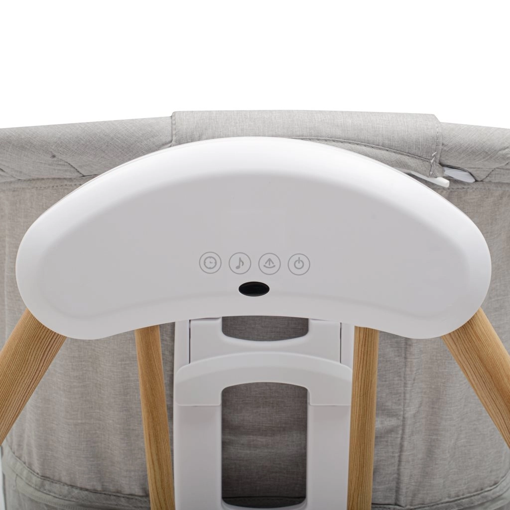 Vgrajeni modul ponuja do 12 melodij in 5 naravnih zvokov za pomiritev, ne manjkata niti časovnik in zaznava gibanja z avtomatskim zibanjem ob joku. Odstranljiv komarnik ščiti pred insekti, dve viseči igrački pa spodbujata razvoj koordinacije oko–roka. Prevleka je prijetna na dotik, zračna in enostavna za pranje, da je vzdrževanje čim preprostejše.