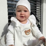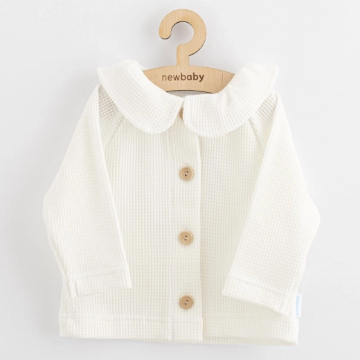 Eleganten otroški jopič–puloverček New Baby Laura je idealen za vsakodnevno nošenje in slavnostne trenutke. Ima praktično zapenjanje na gumbe in čudovit ovratnik, ki modelu doda eleganten videz. Kakovosten 100 % bombaž zagotavlja prijeten občutek na koži in celoletno uporabo.