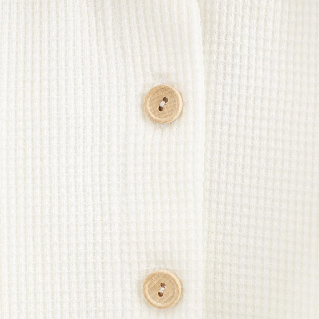 Zaradi brezčasnega videza in lesenih gumbov ga je preprosto kombinirati z vsakdanjimi oblačili ali slavnostno opravo. Praktično zapenjanje olajša oblačenje, V-izrez pa deluje urejeno in elegantno.