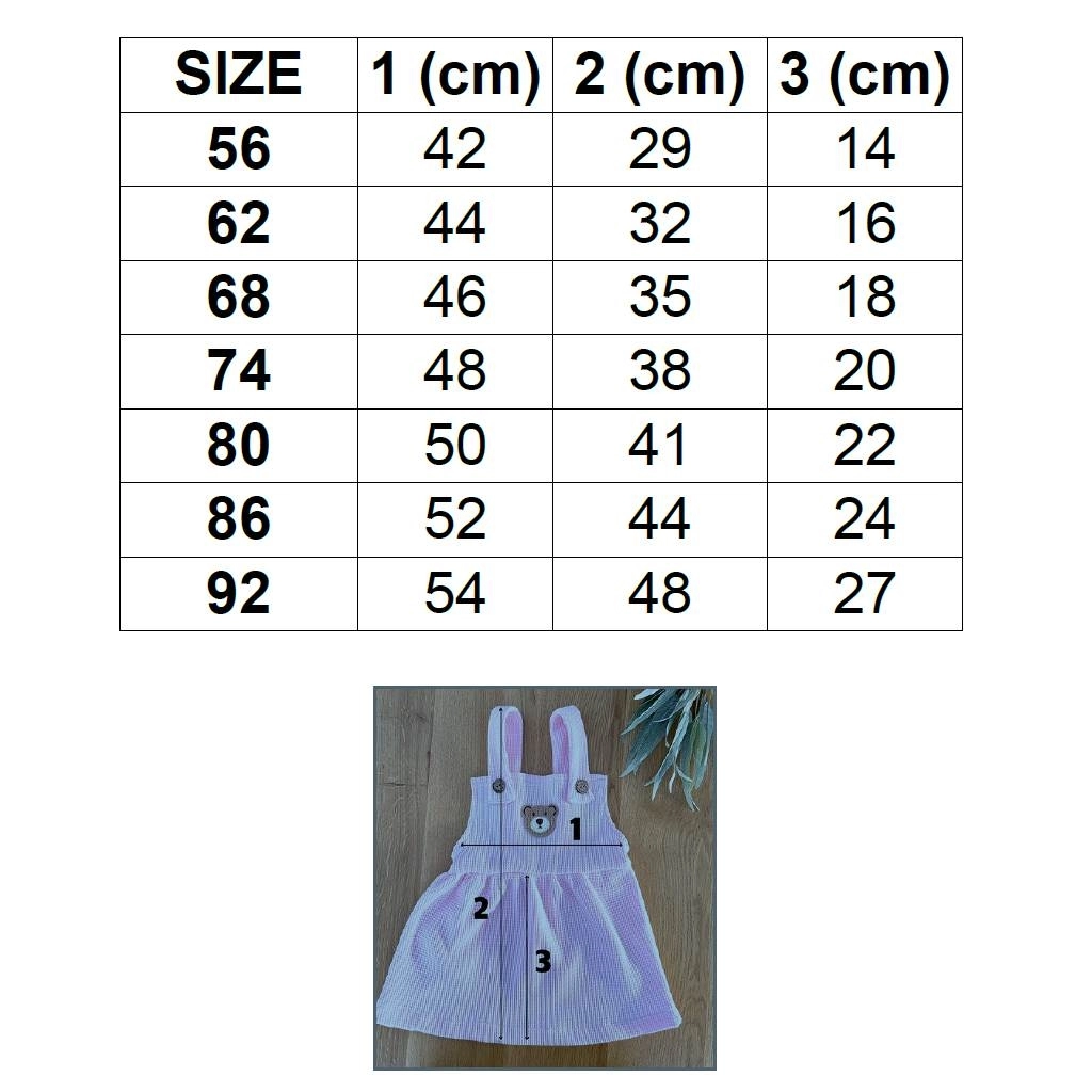 Zaradi udobnega kroja z naramnicami in zapenjanja na gumbe se obleka zlahka obleče in dobro ostane na mestu. Odlično se kombinira s kratko majčko ali bodijem in hlačnimi nogavicami za celoletno uporabo – od običajnih dni do obiskov in praznovanj.