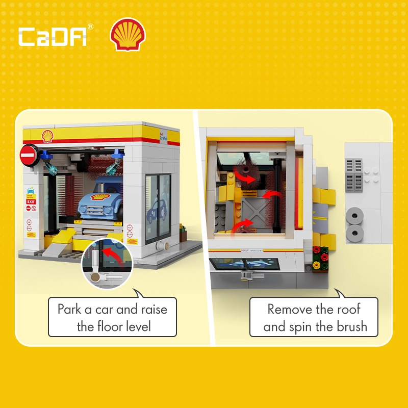 Ta podrobno zasnovana stavebnica prinaša enopozicijsko avtopralnico SHELL z odpirajočimi se elementi, prozornimi okni in funkcionalnimi detajli za še bolj realistično igralno izkušnjo. Zaradi združljivosti z drugimi seti CADA boste zlahka razširili svoje mestne scenarije in vozni park.