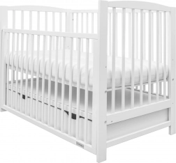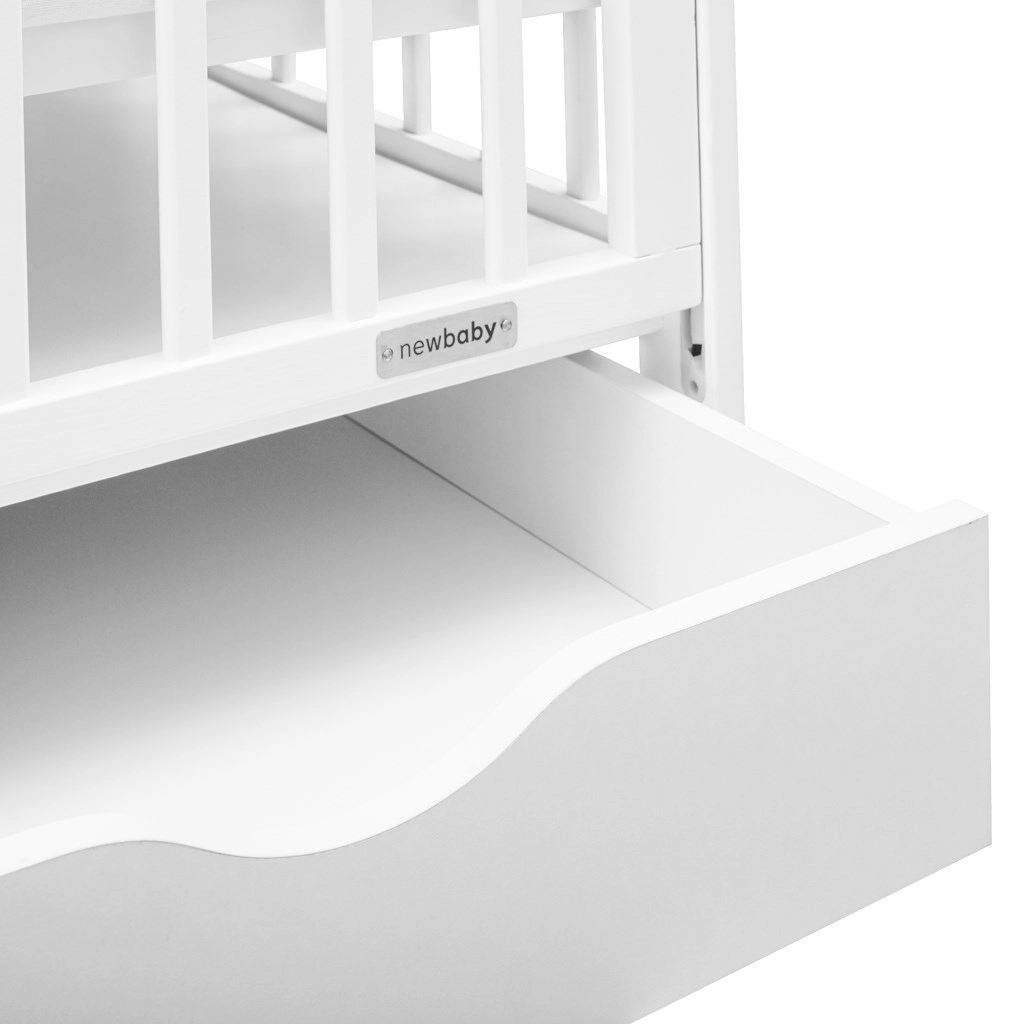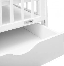 Konstrukcija iz 100% borovega lesa z vodnim lakom je prijazna do otrok in okolja. Vgrajeni predal na krogličnih vodilih se ne dotika tal, mogoče ga je zlahka popolnoma izvleči in znova potisniti – idealno za shranjevanje posteljnine, plenic in drugih nujnih potrebščin.