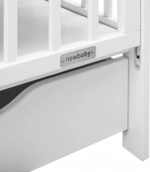 Posteljica New Baby Lilly združuje sodoben dizajn, trpežne materiale in premišljene funkcije za udobje staršev in dojenčka. Spustna stranica z novim varnim sistemom omogoča udobno upravljanje z eno roko. Prezračeno ležišče v treh višinskih nivojih podpira pravilno kroženje zraka okoli vzmetnice in prispeva k higieni spanja.