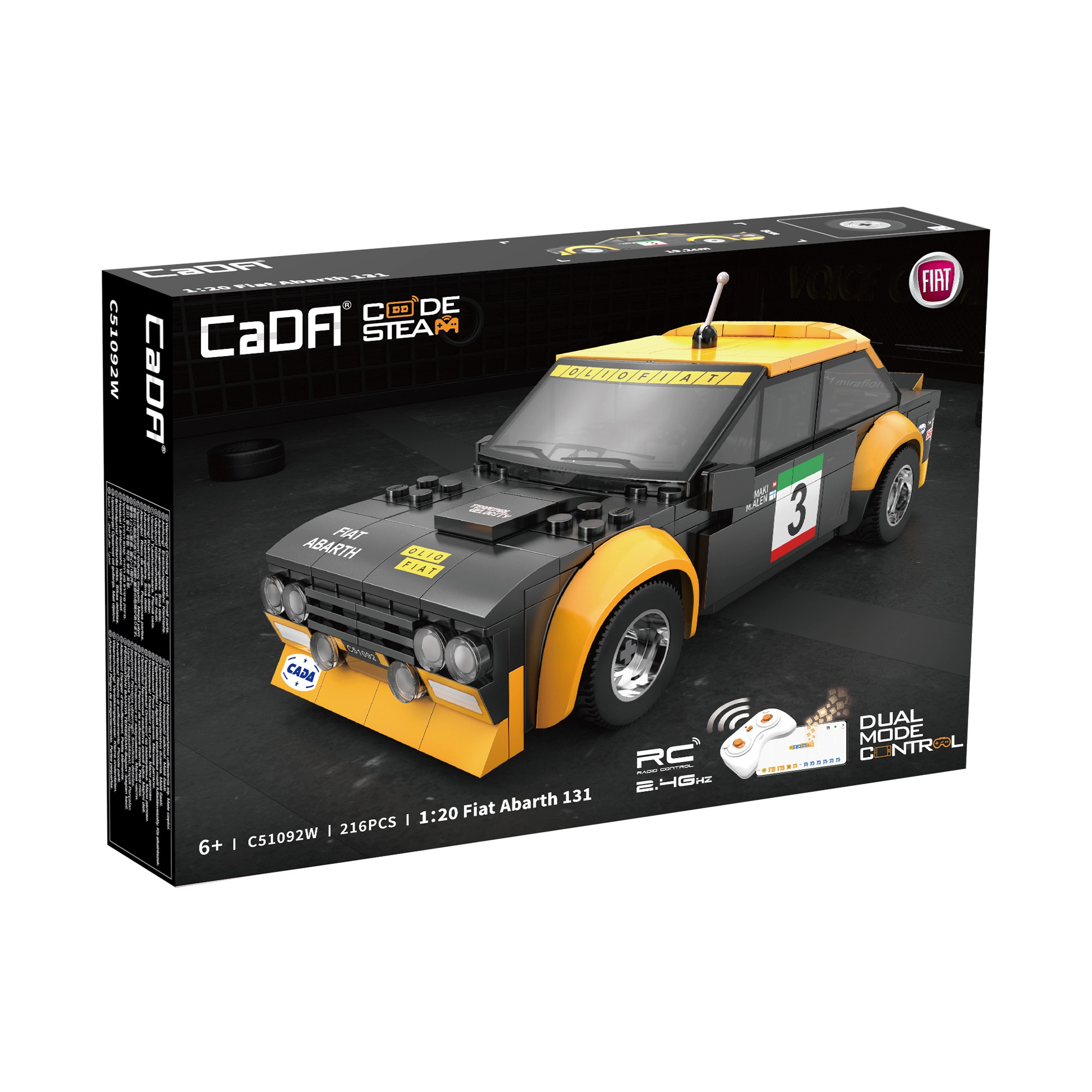 Doživite dinamično vožnjo z dodelanim modelom FIAT ABARTH 131 v merilu 1:20. Avto ima črno‑rumeno dirkalno barvanje s potiski, široke blatnike, anteno in realističen kokpit. Zaradi gumijastih koles gladko vozi po različnih podlagah in doseže hitrost do 3,8 km/h.