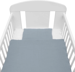 Muselin spada med najbolj čiste in najmehkejše tkanine. Njegova lahkotna, zračna struktura omogoča kroženje zraka in pomaga preprečevati pregrevanje. Material je hkrati odporen na pogosto pranje in s časom postane še mehkejši. Ta komplet združuje udobje in praktičnost za vsakodnevno uporabo.