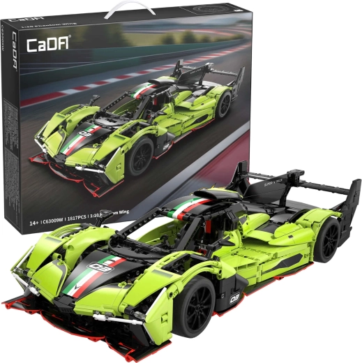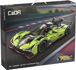 Model CaDA PHANTOM WING prinaša intenzivno izkušnjo gradnje in razstavljanja. Aerodinamična zelena karoserija, premišljene podrobnosti notranjosti in funkcionalni elementi – od krmiljenja do vzmetenja – ustvarjajo avtentičen videz in gibanje dirkalnega vozila. Po sestavi meri avto približno 54 × 13,5 cm, kar ga naredi za impresiven kos tako za vitrino kot za igro.
