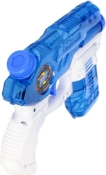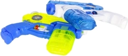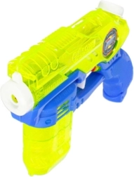 Ta barvita vodna pištola navduši s prozornim ohišjem, ergonomskim ročajem in zanesljivim prožilom. Zaradi kompaktnih mer 17 × 12 × 4 cm jo otroci zlahka primejo in upravljajo. Izberete lahko med dvema slogovnima različicama z modro‑belo in neonsko rumeno barvno kombinacijo.