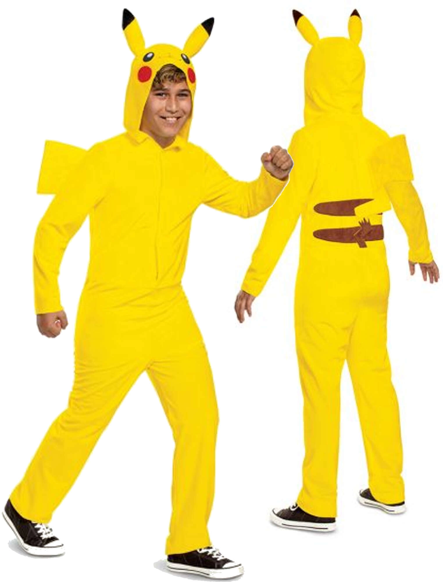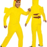 Prisrčen rumen kostum POKEMON Pikachu za otroke, stare 14–16 let, in višine 150–163 cm. Mehak kigurumi pajac s kapuco, ušesi in repkom je idealen za pust, noč čarovnic in domače preoblačenje. Uradno licenciran izdelek z udobnim krojem in celodnevnim udobjem.