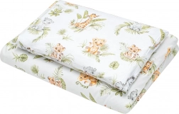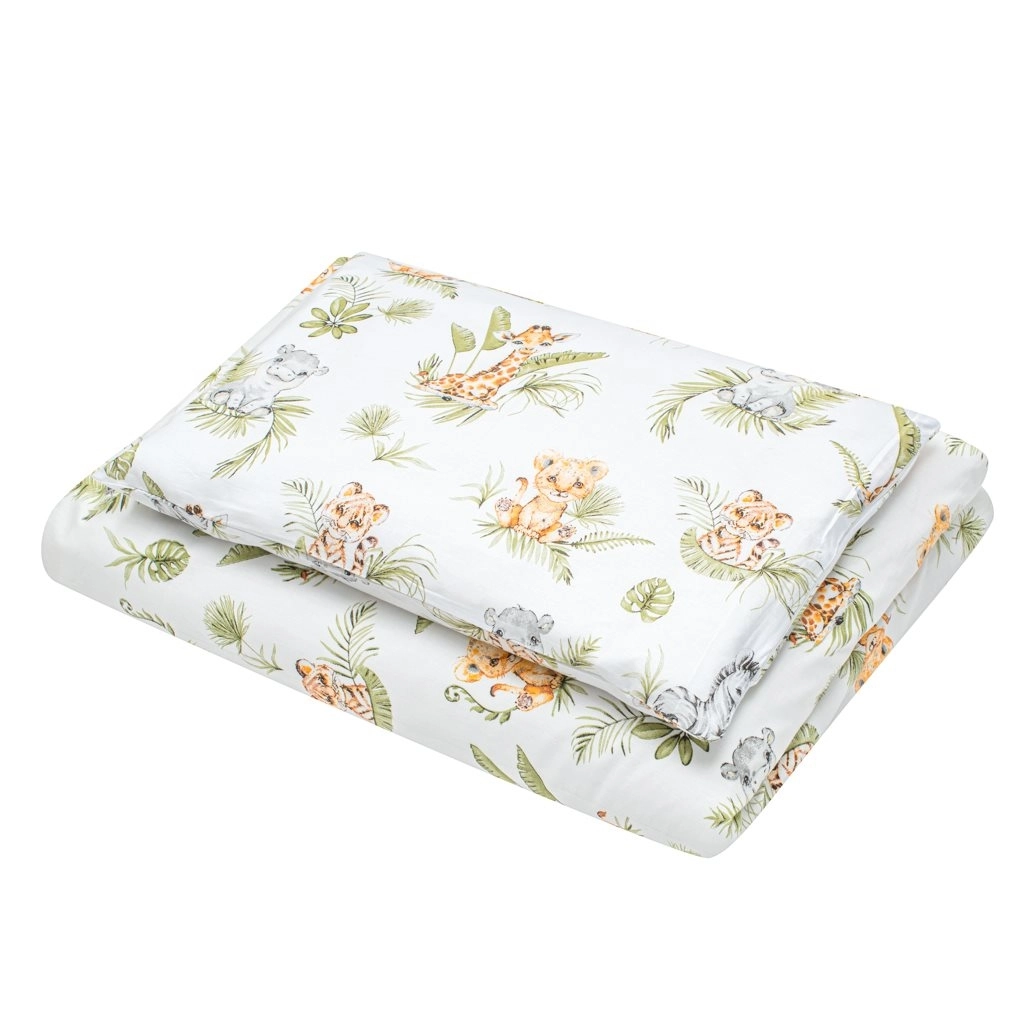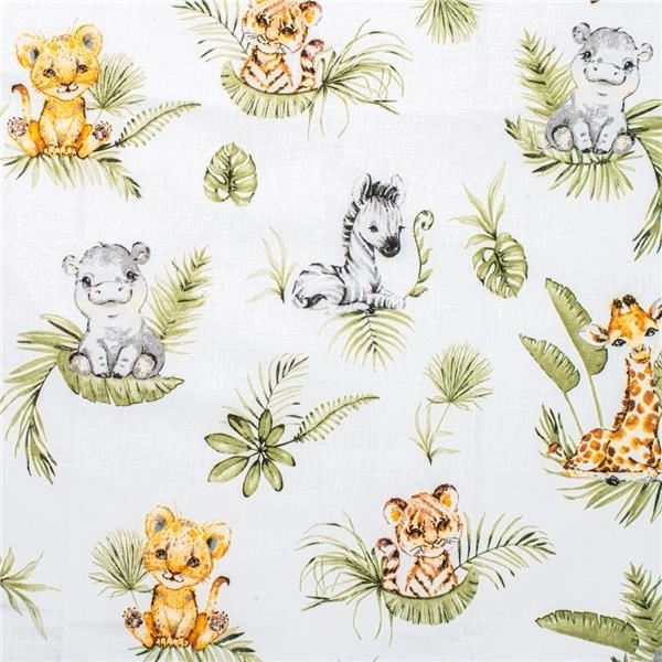 Privoščite svojemu dojenčku udobje in varnost s 3-delnim kompletom za posteljico NEW BABY Jungle. Posteljnina je sešita iz 100 % naravnega bombaža, ki je na otip mehak, zračen in nežen do občutljive otroške kože. Dizajn s pomirjujočimi barvami in motivom džungle ustvarja prijetno okolje za spanje in počitek.
